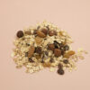 Een kant en klare mix met alleen natuurlijke producten die direct toegevoegd kan worden aan de yoghurt of kwark. Heerlijk om zo te eten maar het kan natuurlijk ook in zijn geheel door de blender. Dat is pas een goed begin van de dag. Samengesteld uit rozijnen, walnoten, amandelen, hazelnoten en pompoenpitten.